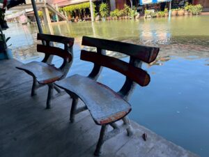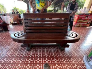旅の中盤で訪れたアユタヤ駅の待合に置かれた重厚な木製ベンチも、おそらくはチーク材。タイ国鉄の駅舎や家具には、耐久性と格式を兼ね備えたチークが古くから用いられてきたそうです。こうした日常の中にこそ、タイと木の深い関係が残っているんですね。