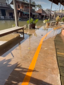 今回の旅では、水上マーケットで知られるアンパワーを訪れました。川沿いでは今も、地元の人たちが昔ながらの水上生活を続けています。