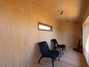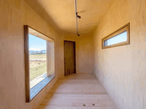 - 床はヒノキの無垢材、壁面は針葉樹合板なので、棚を付けたり自分好みにカスタマイズが可能です。